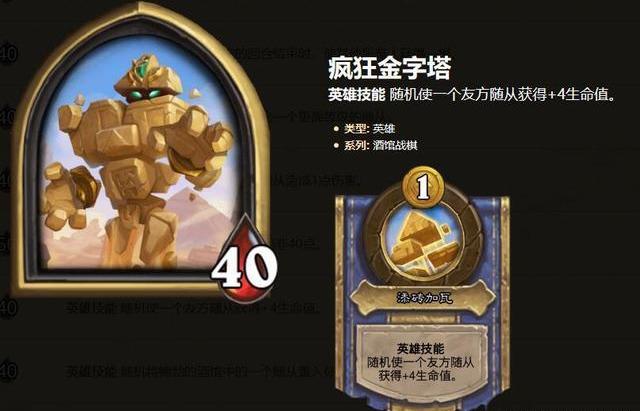 瘋狂金子塔:這個英雄可以讓我方一個隨機的隨從+4生命值,建議只要不卡節奏,每回合都來一發。之前我就說過,魚人流靠的是劇取勝,如果你沒有圣盾,那么堆血量其實也是一個不錯的選擇。而且這種方法可以讓你在游戲的初中期比較皮糙肉厚耐打,遇到噴火龍套也不用慫了。