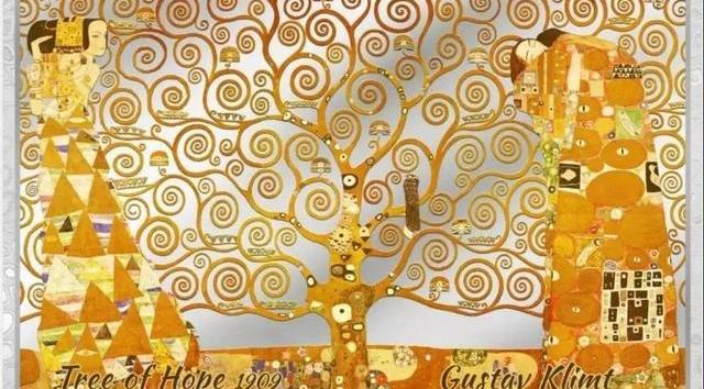 克里姆特.20183000,庫克2018年名畫系列克里姆特生命之樹3盎司彩銀幣,面值:20新西蘭元年份:2019年金屬:999銀重量:3盎司直徑:55毫米發行:1911枚