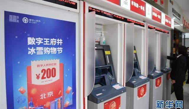 2月12日,在王府井大街中國工商銀行新東安支行,ATM機上線了數字人民幣存取現功能。新華社記者張晨霖攝