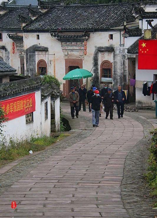 徽州古村大多都遵循著一條亙古不變的風水定律,講究依山傍水,力求避風向陽。黃村亦不例外,它藏在翠綠青山之中,村子雖不大,倒也算是個山水與人文景觀結合得比較完美的地方,歷經歲月滄桑的白墻屋瓦,日出而作的村民的悠閑安然,又是那么的風情萬種。