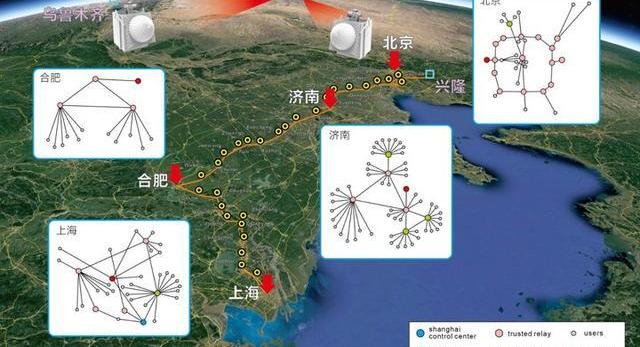 通信網在北京、濟南、合肥和上海分別部署了共4個關鍵的隊列管理器,再由一條超過2000公里的主干光纖鏈路和兩條連接興隆和南山的「地-星鏈路」連接。