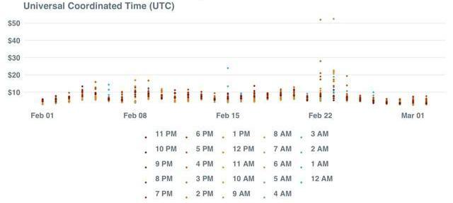 根據FlipsideCrypto的數據科學家ConnorHiggins的說法,費用在過去幾天中有所下降,但不是將其歸因于一個特定的原因,Higgins表示,與2月23日的總費用相比,2月23日的高額費用是一個離群值平均更長的時間跨度。