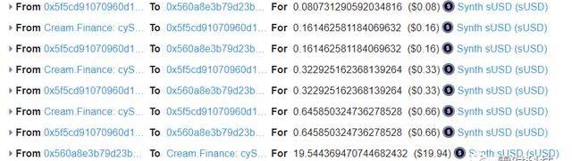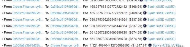 6.攻擊者利用自己得到的大量cySUSD資產,從Cream.Finance中借出多個數字資產,完成攻擊獲利。