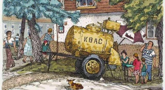 這種鋼制的格瓦斯飲料罐車,過去在蘇聯和俄羅斯非常廣泛,絕大多數城市的夏天里都隨處可見。一到炎熱的夏季,俄羅斯各個城市的路邊都有零售點。零售“格瓦斯”的罐車都被刷成了統一的黃顏色,車身上還印有紅色或黑色的“KBAC”(格瓦斯的俄文縮寫)字樣。