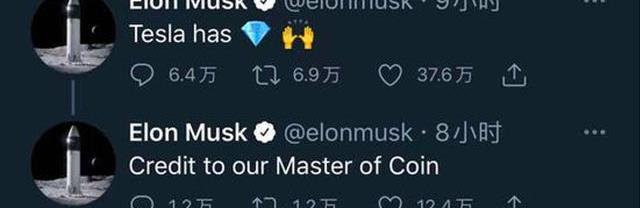 當地時間周三早間發布的一則推文中,馬斯克發布了表情符號“鉆石手”,暗示特斯拉不會拋售所擁有的價值15億美元的比特幣資產。同時,馬斯克還稱贊特斯拉的“錢幣大師”。