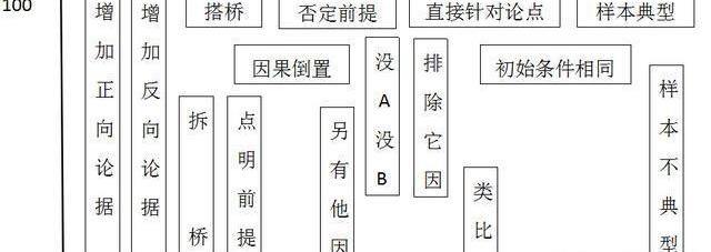 搭橋、否定前提、直接針對論點、樣本典型、因果倒置、初始條件相同這些畫在最上面,說明它們很強,見了就能選。
