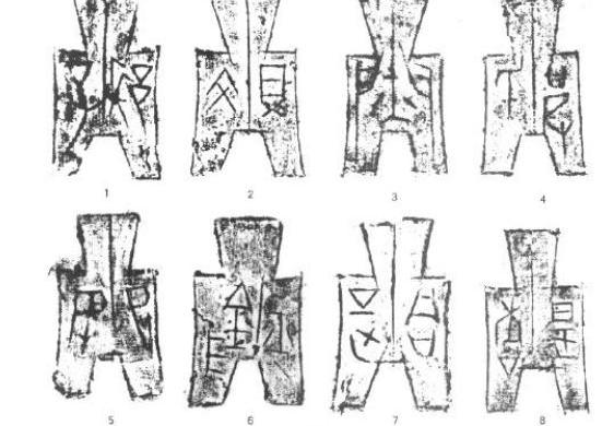 5.襄垣幣,共13枚。幣文大部分為右襄左垣,也有個別是左襄右垣的。大部分背面有記載范次的數目字,有"一"、"三"、"四"、"八"、"十四"、"二十"等。襄垣戰國時初屬韓,后入趙。趙襄子筑城,故名為襄垣。屬趙國貨幣。