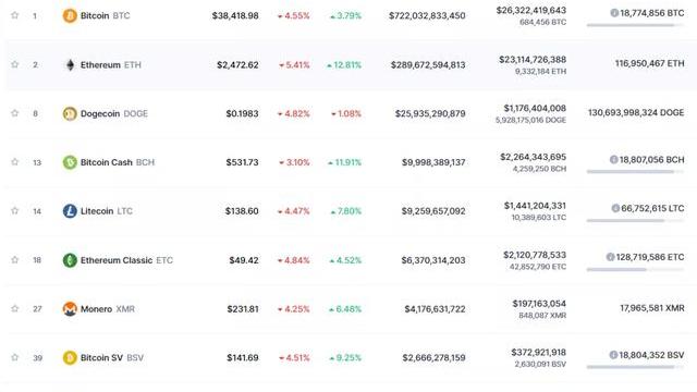 目前有許多加密貨幣采用PoW算法,以下是一些市值排名靠前的PoW資產: