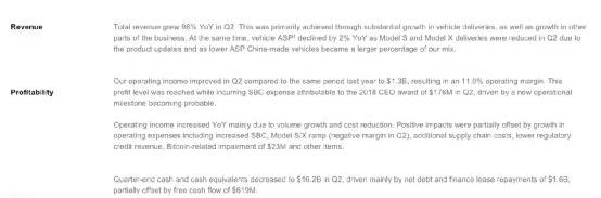 營收方面,特斯拉報告期內實現營收119.6億美元,同比增長98%,去年同期為60.36億美元,市場預期為113億美元;