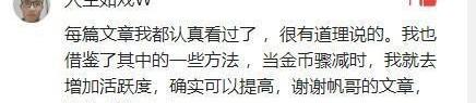總有一些評論中能感覺到:他們確實已經領悟到了活躍度和金幣的邏輯關系,掌握了能讓活躍度上升,金幣穩定增加的方法。只要繼續維持好賬號的這種狀態,金幣就會越來越多。