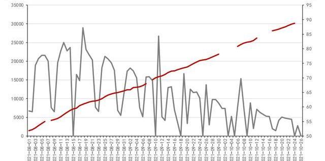 截至9月底,以色列共接種新冠疫苗1518.76劑,其中包括341.5萬劑加強針。隨著加強針的鋪開,當地疫情再次出現明顯地好轉,10月份單日新增病例數已由萬例級別逐漸下降至三位數水平。兩輪疫情爆發初期,以色列能夠及時地提升疫苗接種數。隨著疫苗接種的提升,單日新增病例數能夠在約1個月后出現明顯的下滑,與疫苗的生效時間相呼應,證明了疫苗對于疫情控制的有效性。此外,第二輪疫情爆發的時間與第一輪疫苗有效期的結束時間幾乎吻合,對于評估疫苗有效期的長短起到一定作用,為未來疫情疫苗的走勢提供了預測依據。