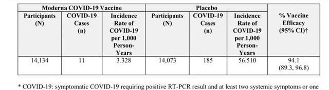 Moderna公司與美國國家過敏及傳染疾病研究所研發的mRNA-1273也給出了相似的III期臨床結果。在本次針對18歲以上人群的臨床試驗中,樣本人數為28207人。在完成第2劑接種14天后,測得mRNA1273疫苗保護率約為94.1%。在3583位65歲及以上的老年人群樣本中,測得疫苗保護率為86.4%,維持在較高水平。