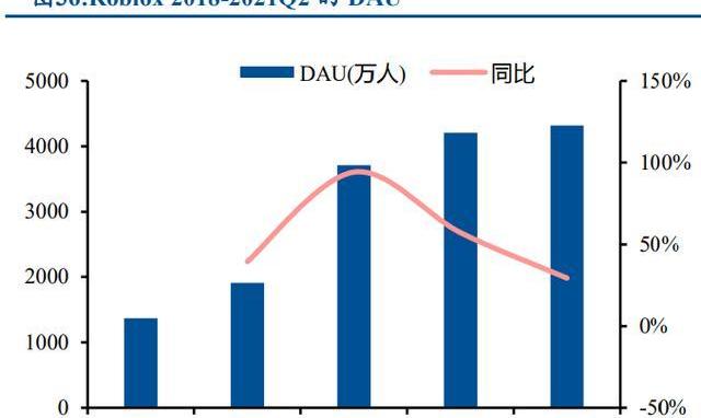 Roblox是元宇宙的雛形,如果說VR/AR則代表著元宇宙的硬件生態,Roblox則代表元宇宙的內容生態。Roblox是全球最大的多人游戲創作與社交平臺之一。公司成立于2004年,旗下同名產品Roblox是一個提供游戲創作、在線游戲與社交的平臺,用戶能夠使用平臺提供的游戲引擎開發游戲并獲取開發者分成,而玩家能夠在多個平臺上即點即玩參與各類游戲,同時平臺提供好友聊天、“一起玩”、PartyPlace等多種社交形式。Roblox以玩家創作為主導,帶來沉浸式體驗和社交場景,是元宇宙的雛形。公司于2021年3月10日上市,上市首日股價相較于發行價上漲54%,截止到2021年10月4日,Roblox股價相較于發行價上漲73%,市值達到了447億元。Roblox目前具有2000萬+的UGC內容,800萬+的開發者。21Q2,Roblox全球DAU增至4320萬人,同增29%,環增2.6%。如果說VR/AR則代表著元宇宙的硬件生態,而Roblox則代表元宇宙的內容生態。