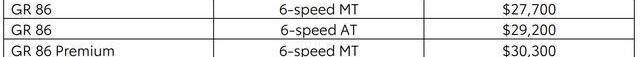 售價高達30,300美元的GR86Premium車型將配備鴨嘴形后擾流板和18英寸合金輪轂、米其林PilotSport4輪胎。采用更高級的穿孔UltraSuede內飾、具有皮革墊子的前運動座椅支持加熱功能,其他亮點包括鋁制踏板、對比色縫線和升級的八揚聲器音響系統。