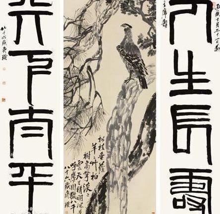 2011年5月22日晚的嘉德拍賣會上,《松柏高立圖·篆書四言聯》以4.255億元人民幣成交,創下中國近現代書畫新紀錄。