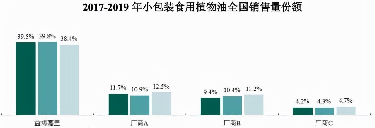 益海嘉里引用了尼爾森數據,解釋其產品在國內的地位,2019年小包裝食用植物油的行業銷售份額為38.4%;包裝米現代渠道市場占有率為18.4%;包裝面粉現代渠道市場占有率為26.7%。