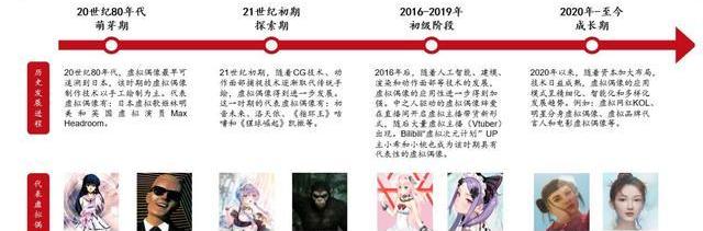 016年后,隨著人工智能、建模、渲染和動作面部捕捉等技術的發展,虛擬偶像的應用性進一步得到加強。中之人驅動的虛擬偶像絆愛在直播間開啟虛擬主播帶貨新形式,隨后大量虛擬主播出現。Bilibili“虛擬次元計劃”UP主小希和小桃也成為該時期具有代表性的虛擬偶像。Bilibili、搜狗、百度和BKizunaAI等公司紛紛布局虛擬人賽道。