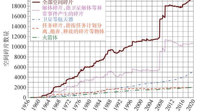 NASA約翰遜航天中心軌道碎片項目辦公室統計的各類型較大碎片的數目