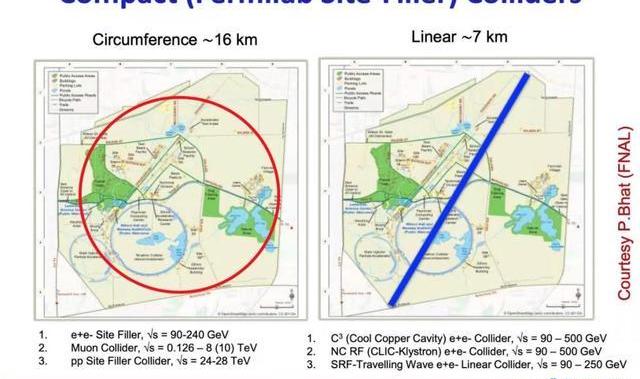 值得注意的是,在費米實驗室的草圖中,除了質子對撞機和正負電子對撞機,還包括了基于其他技術原理的對撞機。