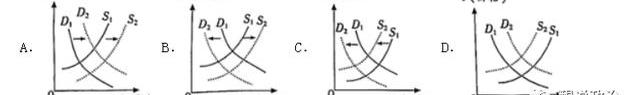 11.圖示中D為需求曲線,S為供給曲線。如果不考慮其他因素,短期內,下列經濟現象與圖示描述相符合的是