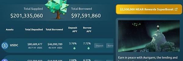 Aurigami是運行在Aurora網絡上的假貸運用,用戶能夠運用它賺取存款利息或借出加密財物,假貸利率相同是依據資金池的財物供需隨時變化。