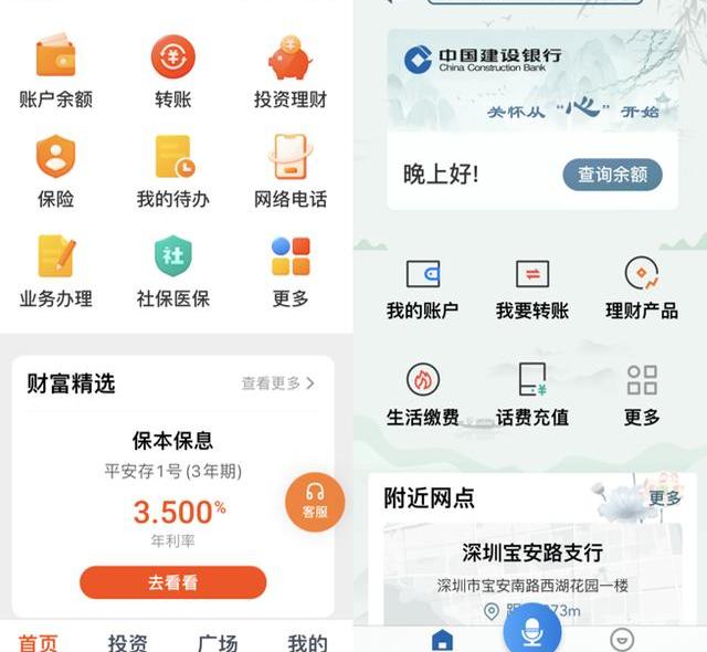 圖:平安銀行、建設銀行“關懷版”App使用界面展示