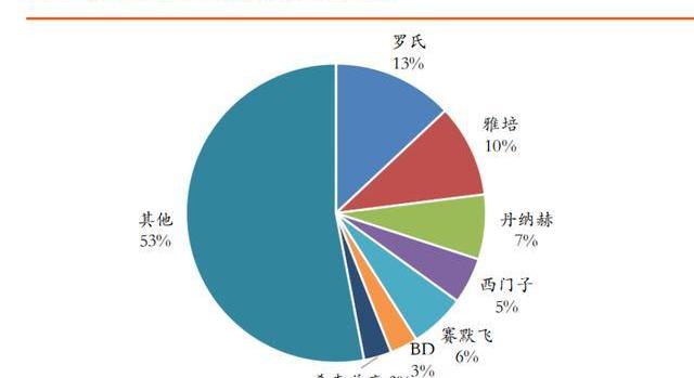 IVD行業的中游環節:主要是對原材料進行組裝,生產出體外診斷試劑的過程,類似于電子芯片產業中的封裝環節。與上游相比,中游產業比較成熟,國外廠商依靠品牌、市場和渠道優勢,依然占據主要國內外主要市場份額。國內生產廠家眾多,行業市場集中度不高;價格波動不大,企業盈利能力穩定;市場供應充足,產品同質化嚴重;競爭激烈,中國企業面臨國際巨頭的巨大挑戰。IVD行業下游主要是流通環節:IVD生產企業可以選擇自建渠道、通過專業經銷商或與產業鏈上大額營銷單位進行優勢互補來銷售其產品。中游生產企業往往需要強勢經銷商幫助推銷攻關,故具有渠道優勢的經銷商或營銷單位非常強勢。