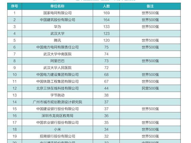 官方報告列出了前20名的就業單位名稱,大家可以看到去阿里、騰訊、字節這些互聯網大廠以及華為等高科技企業的人數還是不少的。因為只列出了前20名就業單位,無法判定其他知名公司的情況。