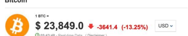比特幣跌破23000美元/枚,全球加密貨幣總市值已跌破1萬億美元