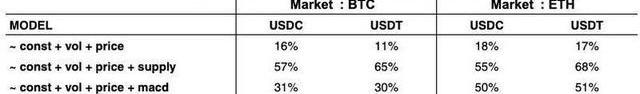 咱們別離對BTC商場和ETH商場的USDC/USDT進行回歸,得到如下R-Squared表: