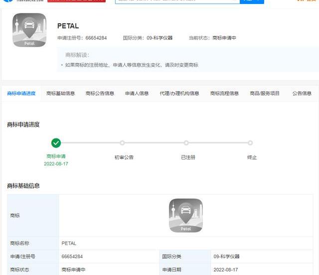 中國經濟周刊-經濟網訊天眼查App顯示,近日,華為技術有限公司申請注冊多個“PETAL”圖形商標,國際分類為運輸貯藏、科學儀器、廣告銷售,當前商標狀態為申請中。值得一提的是,該商標圖案與此前媒體曝光的Petal出行眾測版圖標相近,背景多了疑似東方明珠等地標建筑。