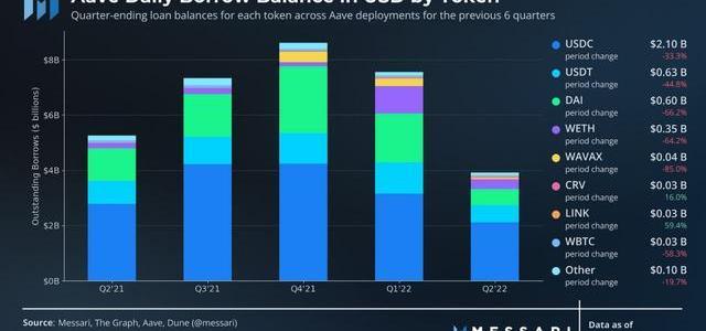 XRP/HKD-0.66%Aave季度收入下降18%,原因是UST暴雷和中心化借貸平臺的倒閉減少了對Aave貸款的需求。