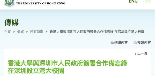 9月6日,香港大學官網發布消息,香港大學與深圳市人民政府簽署合作備忘錄,將在深圳設立港大校園。