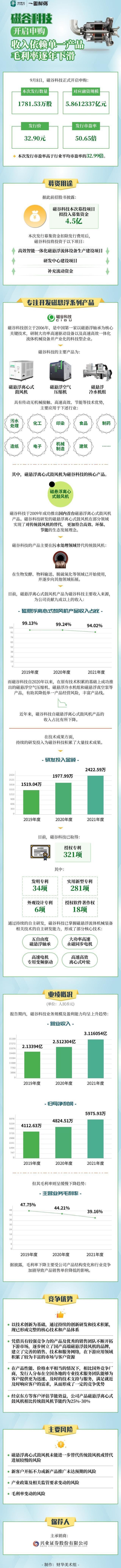 9月8日,磁谷科技(688448.SH)正式開啟申購,本次發行數量1,781.53萬股,預計募集資金約5.86億元,發行價達32.90元,發行市盈率50.65倍,高于行業平均市盈率的32.99倍,亦高于可比公司山東章鼓市盈率的31.56倍,峽鼓動力市盈率的27.14倍。