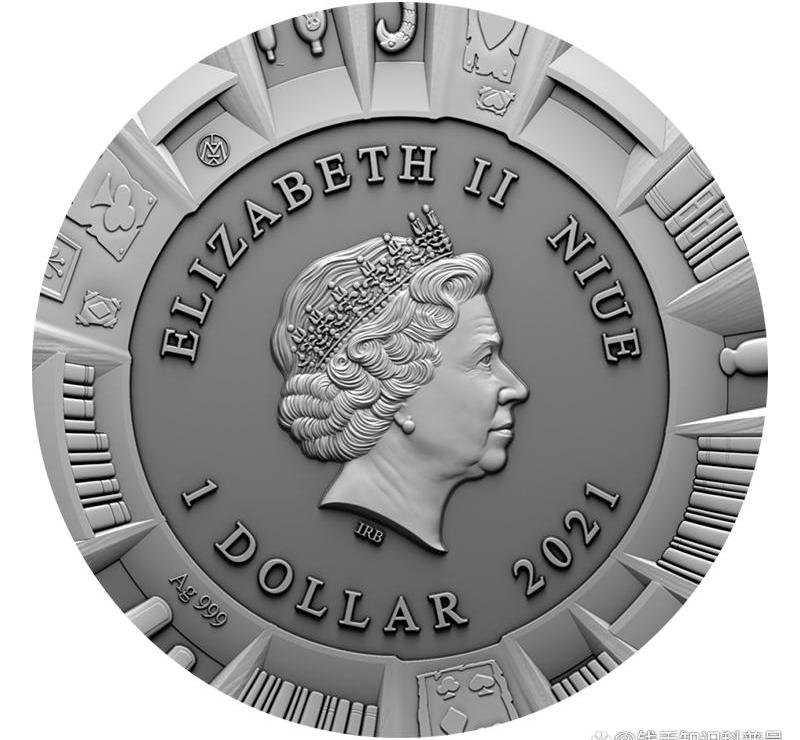系列6冰雪女王收藏硬幣的背面描繪了一個神奇的時刻--祖母坐在溫暖舒適的客廳里,借著油燈的光亮給她的孫子孫女們講童話故事。象征孤獨憂郁的邪惡女王出現在暴風雪中,透過昏暗的窗戶看著他們。盡管她頭上戴著冰晶狀的王冠,胸前戴著雪花狀的護身符,但女王渴望的眼神出賣了她:女王真的如此無情,即使是真正的善良也無法融化她冰冷的心嗎?