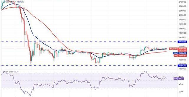 相反,如果價格從17,622美元回落并跌破20日均線,則表明空頭尚未放棄。此后該貨幣對可能會在15,476美元至17,622美元之間的較大范圍內盤整。