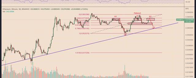 這使得ETH/BTC的主要下行目標在2022年第四季度達到0.059BTC左右,比當前價格水平下跌20%。