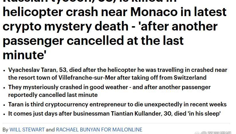 這樣連續不斷的事故,也讓一些人聯想到之前加密貨幣圈出現的神秘死亡事件。