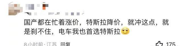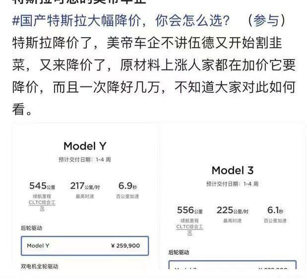 甚至更有車主表示:美國車企真是“不講武德”,說降價就降價,別的車企都因原材料上漲、國補取消加價,特斯拉卻要降價,還降好幾萬人,真是會“割韭菜”。