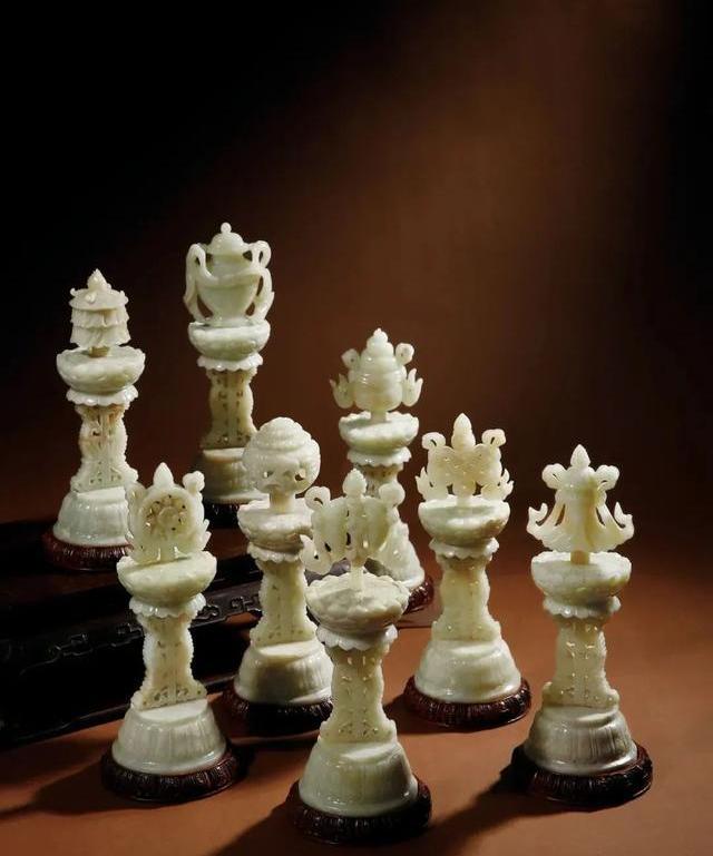 清早期白玉雕吉祥如意八寶紋佛供擺件
