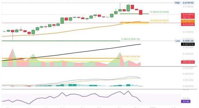 幣安幣也已經對BTC進行了為期三周的強勁修正運動。此外,BNB似乎看跌本周突破0.1526BTC附近的0.382斐波那契支撐。