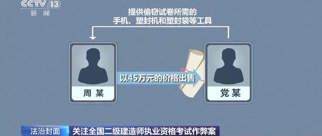 被告人之一的黨某聽說周某能接觸到考試試卷,便開始拉攏周某。兩人最終商定,周某負責竊取試卷,然后以45萬元的價格出售給黨某。黨某還為周某提供了偷竊試卷所需的手機、塑封機和塑封袋等工具。