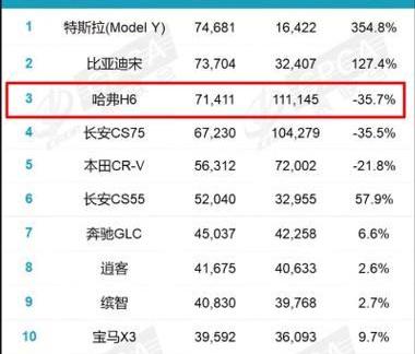 首先就是哈弗H6被圍獵。作為SUV界的一款神車,哈弗H6對于長城汽車的貢獻不言而喻,上市11年來,哈弗H6總銷量早已超過300萬輛,并且拿下90余個月的SUV銷冠。然而,哈弗H6已先后被特斯拉ModelY和比亞迪宋PLUS趕超。