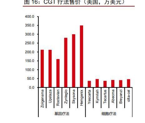 成本高居不下導致治療費用高昂:基因療法因主要用于治療罕見病,患者人數較少,故定價極高。而細胞療法產品僅生產成本就在8-10萬美元左右,終端價格則高達40萬美元。雖然各個公司均有推出針對基因或細胞療法的分期付款或按療效付款政策,但定價依舊高過絕大多數傳統藥物。