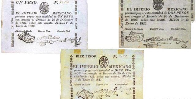 作為一項極端的手段,紙幣被發行。這些紙幣是墨西哥的首次正式發行,也被認為是該國首批臨時需求紙幣。這些紙幣是單面印刷的,印在一個幾乎正方形的白色紙張上,上面印有“IMPERIOMEXICANO”的字樣,面額為1、2和10比索。