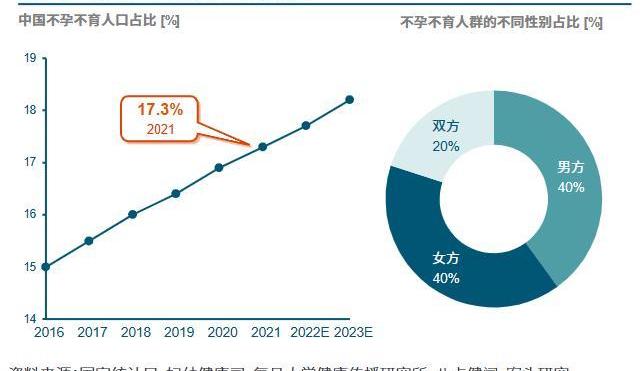 近年來我國居民不孕不育占比逐步提高,目前已達到17%且未來預計持續增長,導致不孕不育的誘因十分多樣,生理因素,長期處于高壓下,負面情緒多,環境因素,經常吸煙,酗酒等行為,過度肥胖和消瘦也會影響生育能力。