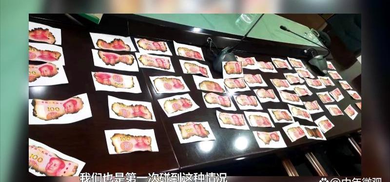 記者:我手里拿著的這幾張燒焦的貨幣,就是當時在這個火坑被楊阿姨不小心給點燃的。楊阿姨一共點燃了100張面值100元的人民幣,這筆錢是楊阿姨的看病錢。當時共撿回了71張,但是像這樣的損壞程度,很顯然已經無法再在市場上流通。