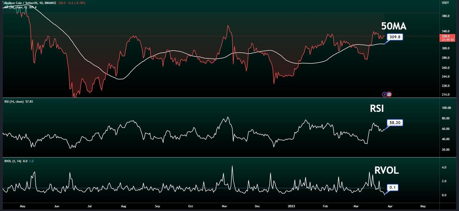 幣安幣(BNB)2023年價格預測—RVOL、MA和RSI