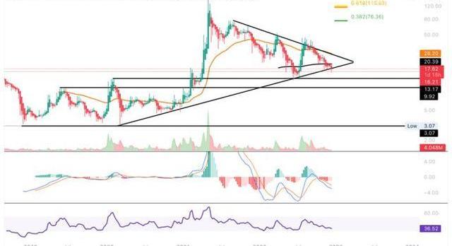 如果ETC突破9.9美元和13.17美元之間的支撐,重要支撐將再次等待3美元附近。從目前的價格水平來看,這相當于價格下跌了82%左右。