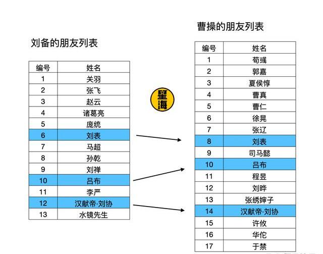 就拿社交平臺的關系網絡來說,不知道大家有沒有在其他朋友的關注列表里尋找共同好友的經歷,傳統的方式,是把兩個人的好友都列出來,然后尋找其中重合的部分。